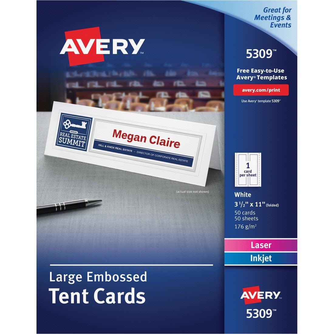Avery Laser, Inkjet Print Tent Card - 3 1/2" x 11" - 0% Recycled Content - 50 / Box - White
