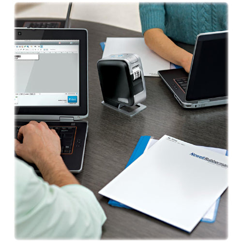 Plug-and-play label maker offers unlimited number of print lines and versatile uses. Use it yourself or share it with others in your wireless network (easy Wireless Setup Wizard included). Customize labels with any fonts or graphics on your computer through the PC or Mac connection. Print crystal-clear graphics, bar codes, and logos at 300 dpi resolution. The LabelManager Wireless PnP delivers fast and easy printing of multiple labels with automatic label cutter. Use Dymo D1 labels in 1/4", 3/8", 1/2", 3/4" and 1" widths. Print on-the-go with the included rechargeable battery when unplugged. Label printer also features a QWERTY keyboard, bar codes, repeat printing, auto numbering, mirror printing and vertical printing. Label maker includes charging adapter, starter D1 label cassette and USB cable.