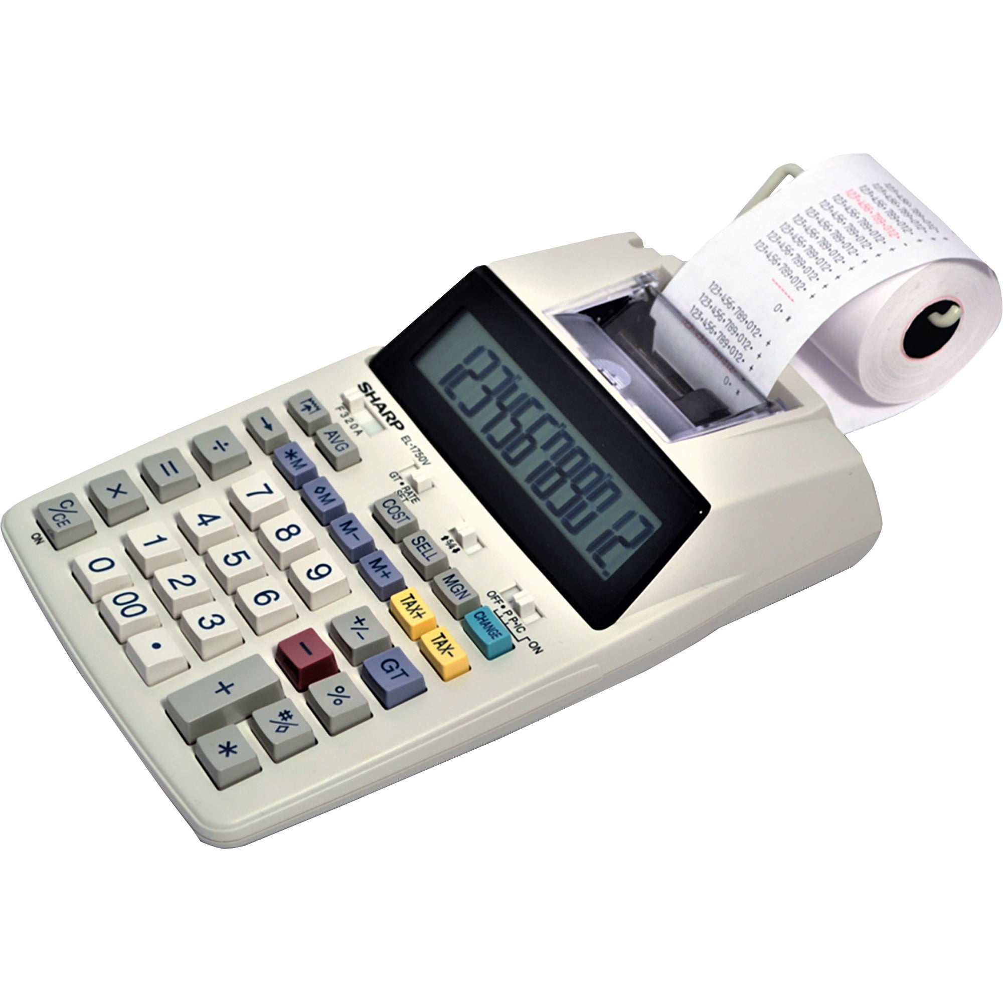 Sharp EL-1750V 12 Digit Printing Calculator - Dual Color Print - 2 lps - 2 Line(s) - 12 Digits - LCD - Battery/Power Adapter Powered - 4 - AA - White - 1 Each