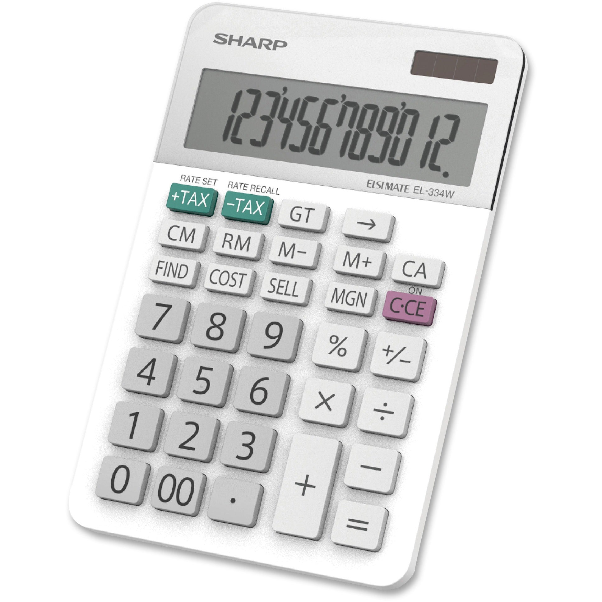 Sharp EL-334WB 12 Digit Professional Large Desktop Calculator with Kick Stand Display - Large Display, Durable, Plastic Key, Dual Power, 4-Key Memory, Angled Display, Kickstand, Sign Change, Double Zero, Independent Memory - 12 Digits - LCD - White - Desktop - 1 Each